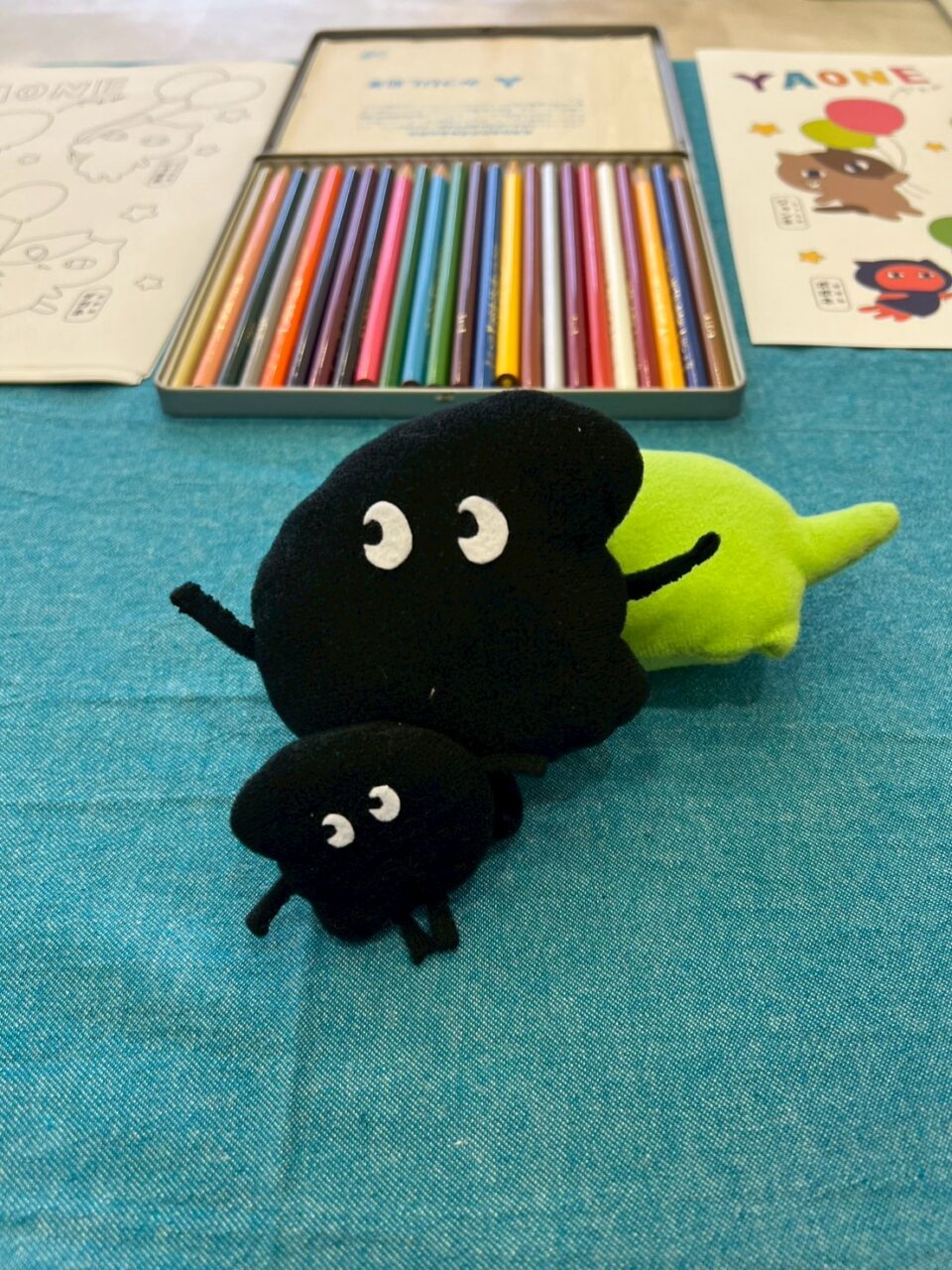 さらにこの夏新たに企画した、ねねねズ(ニャオネ、ボボネ、ダガネ、ジャンネ、ダヨネ)のキーホルダー&シールのカプセルトイや、塗り絵コーナーも準備しました。
